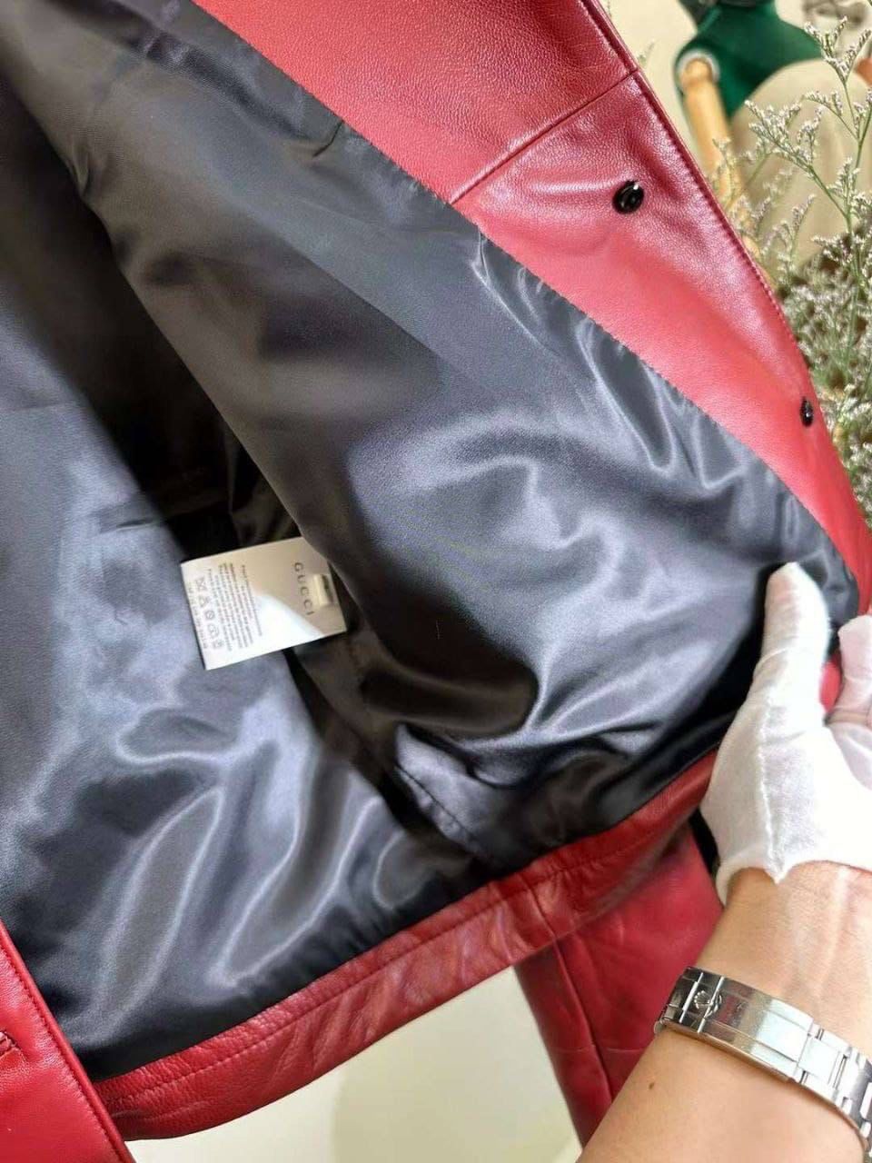 GUCCI-LEATHER JACKET WITH HORSEBIT DETAIL-WOMEN